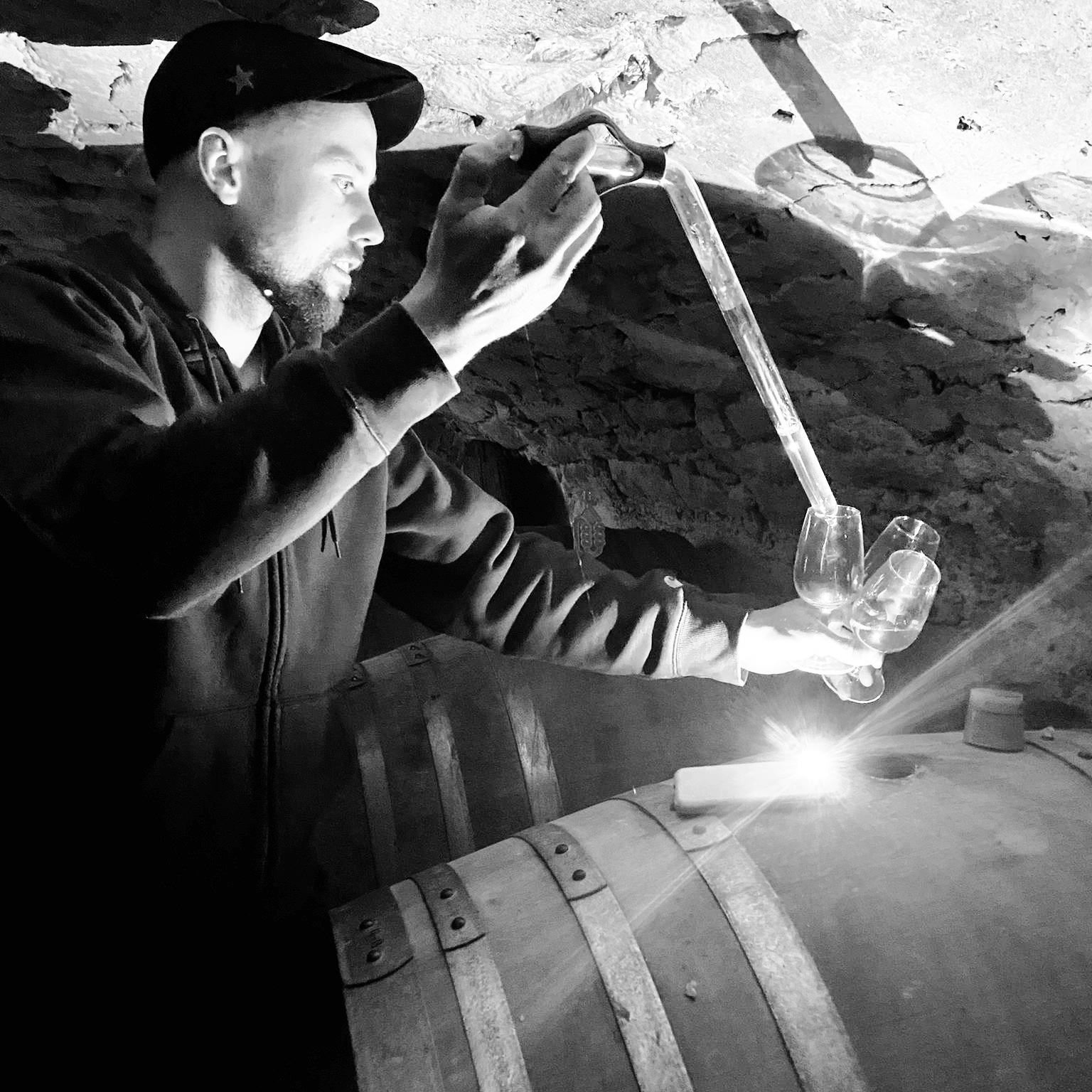 Alle Weine gären und lagern in alten Holzfässern. Diese haben den Vorteil einer permanenten Mikrooxidation, welche den Wein ohne jegliche Zusätze stabilisiert.