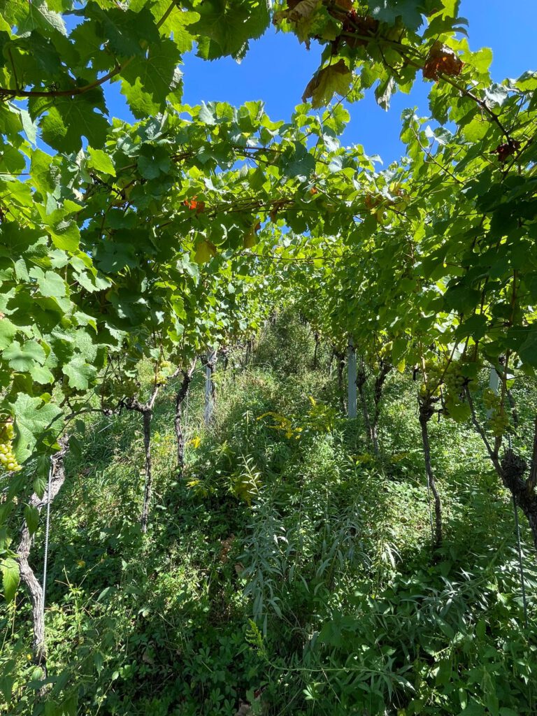 Inzwischen bewirtschafte ich 2,5 Hektar ausschließlich von Hand. Die Arbeit ohne Traktor trägt zur Bodengesundheit bei, da keine Verdichtung stattfindet. Ich mähe maximal zwei mal pro Jahr, teilweise auch gar nicht. Wichtig für die Rebengesundheit ist die Steigerung der Biodiversität – sowohl im Boden als auch über dem Boden. Herbizide werden nicht eingesetzt und der Boden wird auch nie geöffnet – ich sehe Beikräuter als natürlichen Teil der Weingartenflora, der gleichzeitig auch die Weingartenfauna unterstützt.
